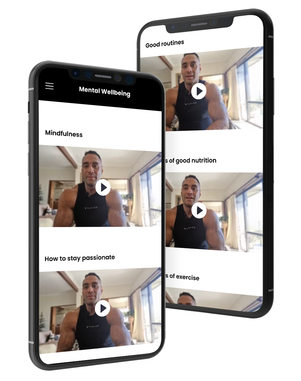 Training your mind is just as important as training your body. That's why with my plan you get BONUS access to a library of helpful videos designed by professionals to help you understand and improve your mental wellbeing.
